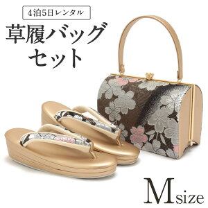 草履バッグ レンタル Mサイズ / ゴールド 【往復送料無料 草履バッグセット】【訪問着/付下げ/色無地/振袖/袴に】 履物 礼装用 成人式 婚礼 結婚式 披露宴 パーティ 入学式 入園式 卒業式 卒園式 結納 お宮参り 金 【レンタル】