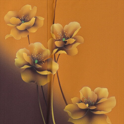■0532-39-7660 標準サイズ 身長・・・160m〜180cm位 洋服サイズ・・・7号〜11号位まで 商品説明 シックなからし色に大輪のけしの花を幻想的なタッチで描きその曲線美はクールでモダンな香気が漂う訪問着です。