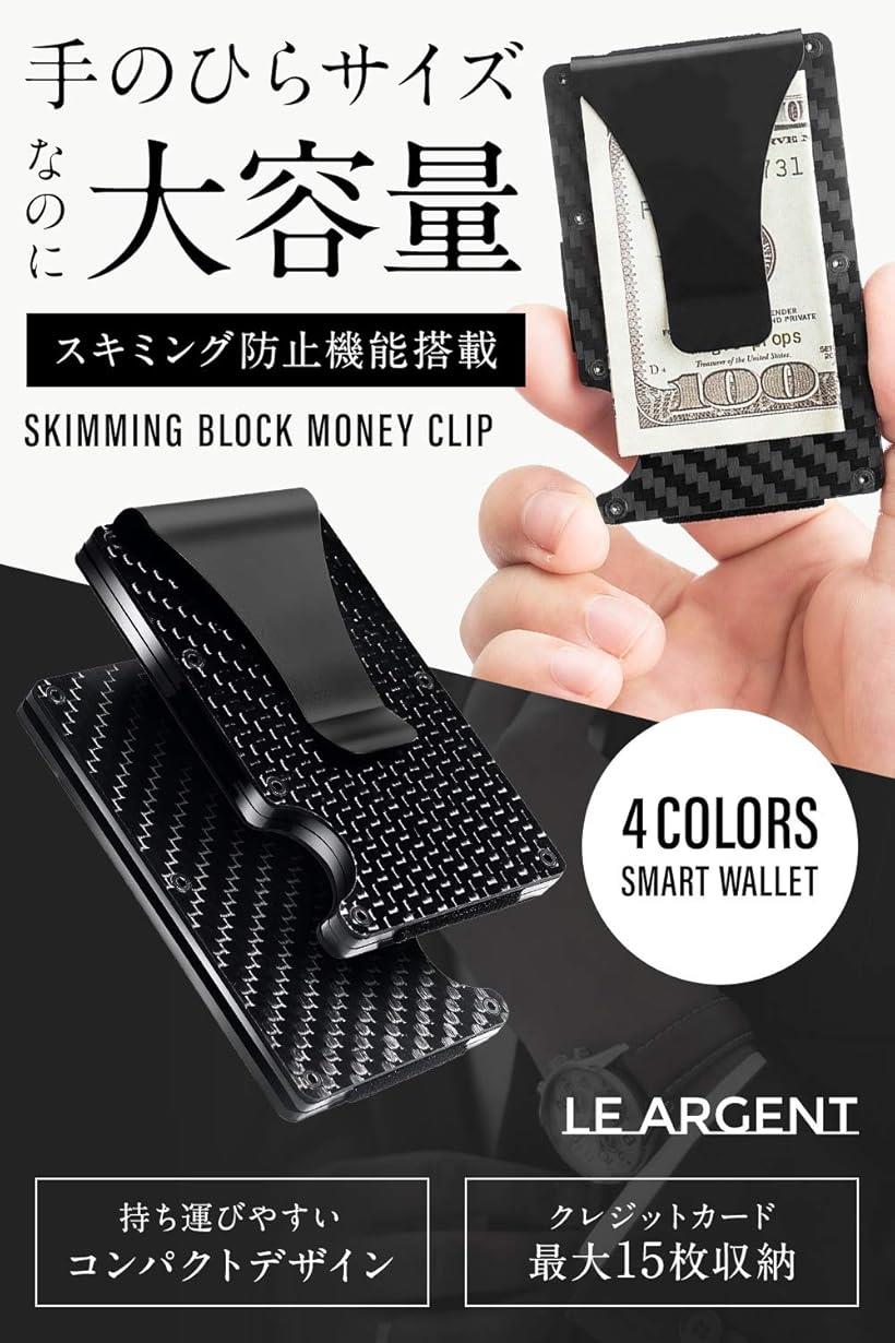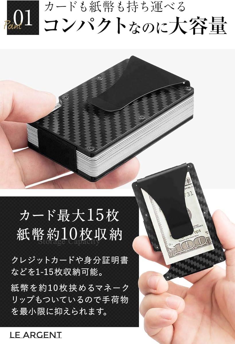 商品コード2B82L3F5R3商品名マネークリップ クレジットカードケース カーボン カーボンファイバー 財布 磁気防止 スキミング防止 大容量 メンズ 薄型 アルミブランドLE ARGENT (ル アルジャン)カラーカーボンブラックサイズ等クリップ式商品仕様「お札&カード収納」お札は外部のクリップ部分に折り畳んで10枚収納可能。