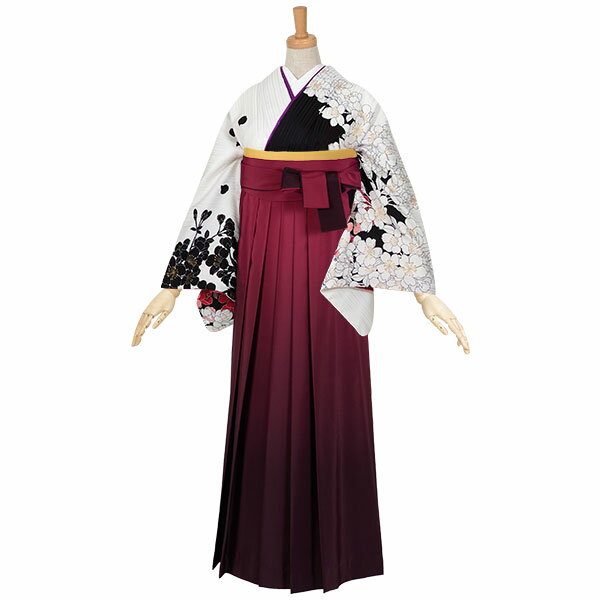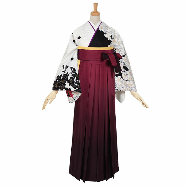 【レンタル】【訳あり】卒業式 袴 レンタル 先生 袴 レンタル 女 袴 セット 教職員 教員 職員 先生〔HG375〕 白×黒モノトーン桜 ポリエステル 卒業式 袴 女性 はかま ハカマ 教員 先生 レンタル 貸衣装 フルセット